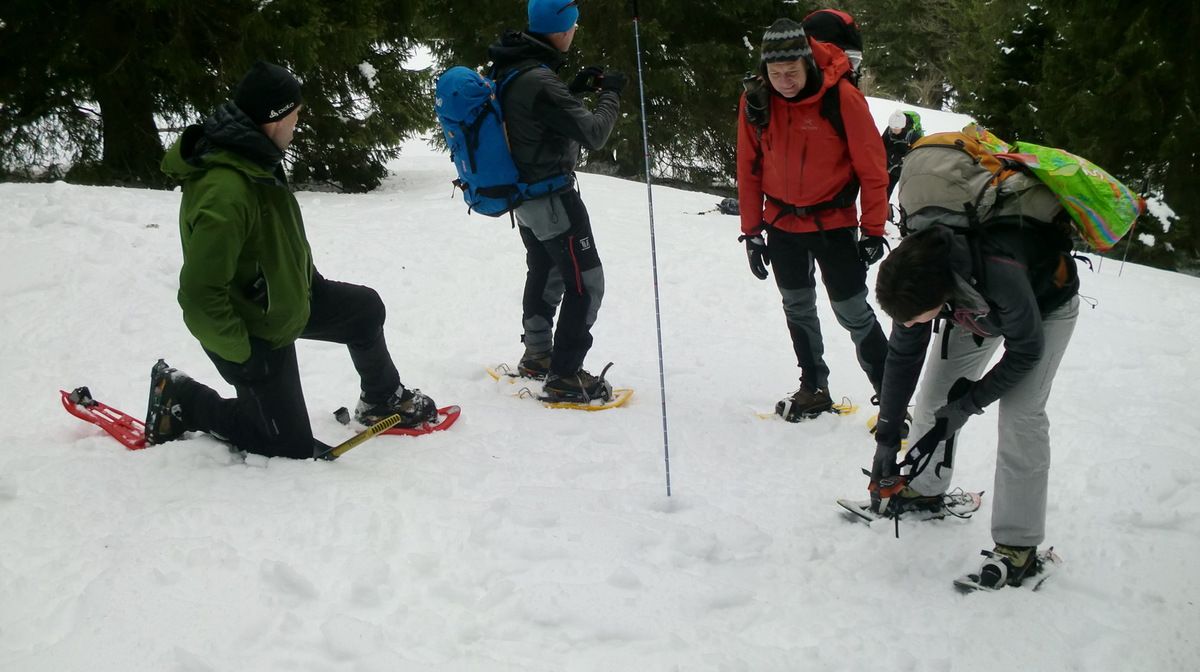 Exercice de recherche de victimes d'avalanche, avant de rejoindre les voitures et de prendre la direction de l'Alsace. Photos de Laurent et perso.