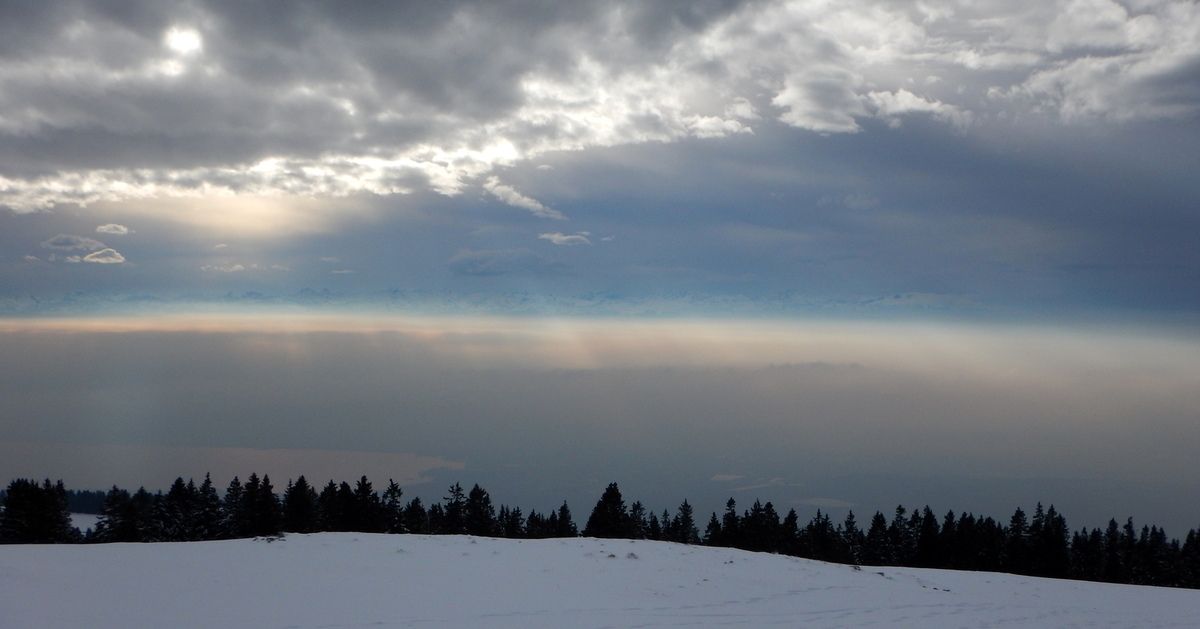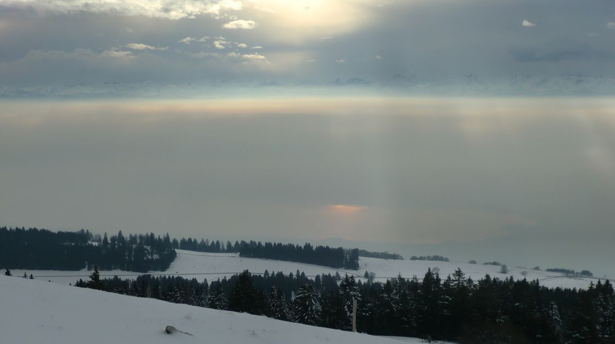 Aperçu des sommets jurassiens en direction du Nord. Le Chasseral au milieu. Photos perso.
